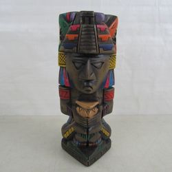Aztec Mayan Hand Crafted Wooden Folk Art Totem Pole Sculpture 11 1/2" Tall