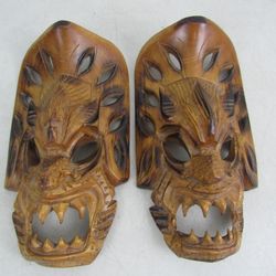 Filipino Pair Of Hand Carved Ifugao Bakunawa Tribal Demon Masks