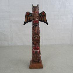 Alaskan Inuit Eskimo Hand Crafted Wooden Totem Pole 13" Tall