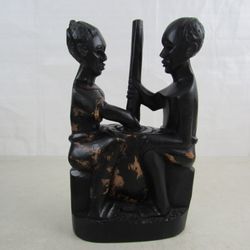 African Ghana Hand Carved Tribal Folkart Husband & Wife Sculpture 12"