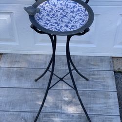 Folding Metal Bird Bath Stand w/ Removable Blue White Stone Bowl Garden Decor$95Gaithersburg, MD