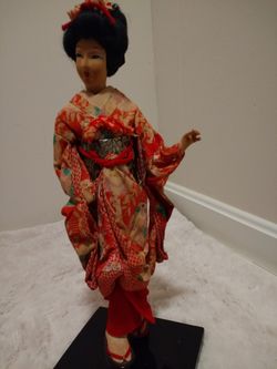 Vintage Japanese Beautiful Doll KIMONO GEISHA JAPAN 9" Wood Laquer Base$25Gambrills, MD