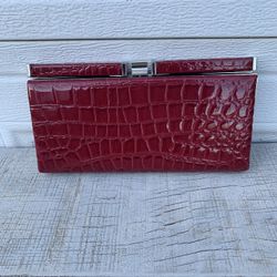 Ann Taylor LOFT Burgundy Croc Embossed Clutch Bag Frame Kiss Lock Faux Leather $35Germantown, MD