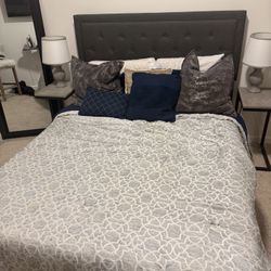 Queen Bed Frame + Matress/box Spring + Night Stand + Table Lamp $200Sterling, VA