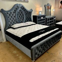 Juararo Queen Panel Headboard Bed with Mirrored Dresser Final Days of Savings Galore$847District Heights, MD