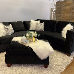 Brand New Black Velvet Sectional Sofa Couch With Ottoman $949Wheaton-glenmont, MD