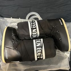 tan winter snow boots with white faux-fur cuffs and thick, non-slip black soles $120Arlington, VA