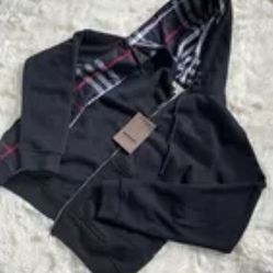Black Burberry Hoodie With Red And White Plaid Lining$100Uppr Marlboro, MD