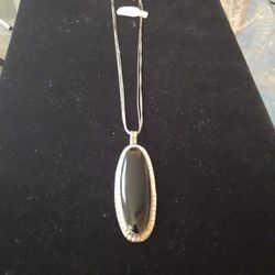 Sterling Silver Necklace with Sterling Silver Charm with Onyx By Sajen $70New Carrolltn, MD