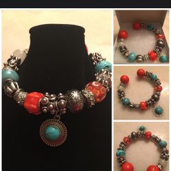 Beautiful Unique Charm Bracelet- Orange/Blue/Silver$35Temple Hills, MD