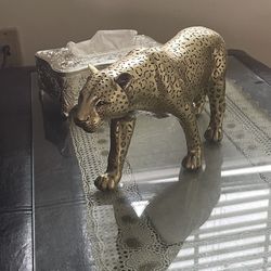 Majestic African Lion Roaring Cast Aluminum Silver Tone Statue 8 1/2" Length