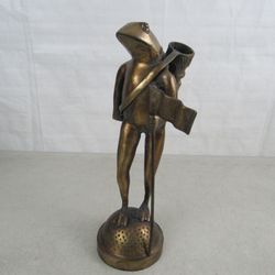 Frog Golf Caddy Solid Brass Vintage Desk Statue Pencil Holder 13" Tall