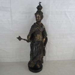 Queen Victoria? Solid Brass Heavy Vintage Statue 12 Lbs. 22 5/8" Tall