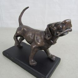 Vtg. Bronze Tone Hunting Dog With Bone Die Cast Metal Statue 8" Length