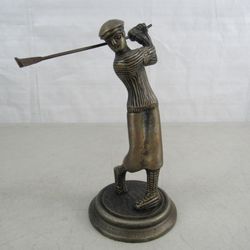 Vintage Brass Metal Golfer Statue 8 3/4" Early 1900s Attire Figurine