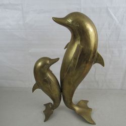 Vtg Brass Mom & Baby Dolphin Statue 19" Tall Made In Korea