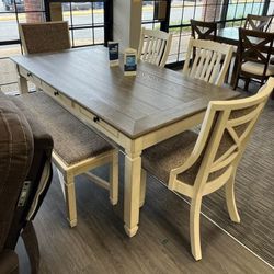 BOLANBURG ANTIQUE WHITE-OAK DINING ROOM SET 6-Piece (Table+4 Side Chairs+Bench)$1,186Bowie, MD