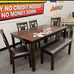 BENNOX BROWN DINING TABLE AND CHAIRS WITH BENCH (SET OF 6)$549Hyattsville, MD