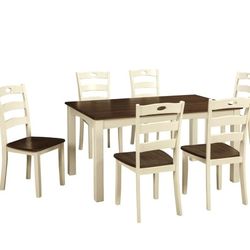 Woodanville Cream/Brown Dining Table and Chairs (Set of 7)