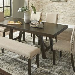 [SPECIAL] Bridson Gray Dining Table and Chairs with Bench (Set of 6)