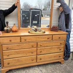 Beautiful Natural Solid Wood 9 Drawer Dresser. With Large Mirror $275Bowie, MD