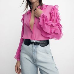 Zara pink frills blouse. Xs$45West Mclean, VA