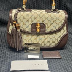 Vintage Gucci GG Canvas and Leather Bamboo Top Handle Beige/Ebony HandBag $1,500Manassas, VA