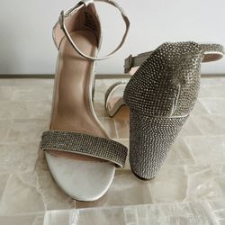 Silver, bridal, block heels coated in crystals. $45Riverdale, MD