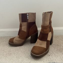 Lucky Brand Lureli Wedge Bootie Suede Peep Toe Ankle Boots Tan Women's Sz 9 NIB$65Baltimore, MD