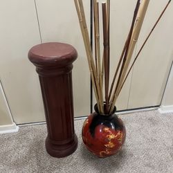 Brand New 2 Piece Set Of Large 18” H Kutani Vase With Bamboo Filling And 28” H Pedestal Stand Pickup Gaithersburg Md20877$80Montgomry Vlg, MD