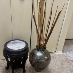 Brand New 2 Piece Set Of Large 20” Murano Thick Glass Vase With Bamboo Filling And 18” Carved Wood Marble Top Stand Pickup Gaithersburg Md20877$100Montgomery Village, MD