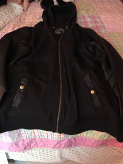 Brooklyn Cloth black faux leather sleeves hooded sweater/ jacket for men large$15McLean, VA