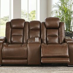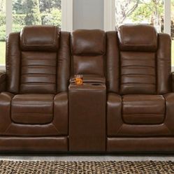 Backtrack Chocolate Power Reclining Loveseat with Console