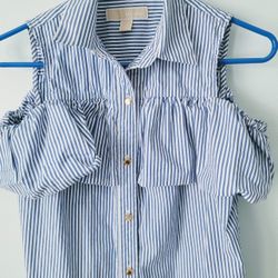 Michael KORS Blue/white Pin Stripe cold shoulder shirt$10Germantown, MD