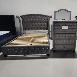 Best Price Brand New Bedroom Furniture| Gray Sophia Luxus Velvet Queen 4 Piece Bedroom Set ( Dresser, Mirror, Nightstand,Bed) Mattress Sold Separately$2,279Fairfax, VA