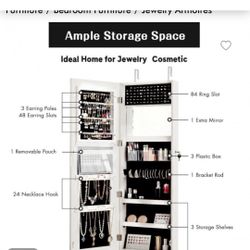 White Mirror Jewelry Cabinet Wall-Mount/Door-Hanging Armoire, Lockable Storage Organizer$100Hyattsville, MD