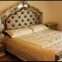 Queen Size Beige Bed Frame with Nightstand and Dresser with Mirror$1,400Lorton, VA
