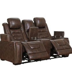 Backtrack Chocolate Power Reclining Loveseat with Console