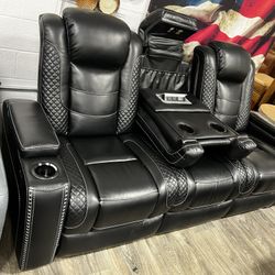 Big Sale ! Black Leather Power Reclining Sofa 💫 Reclining Loveseat , Recliner On Display | Party Time , USB Port ,LED Night @ Delivery 🚚$1,669Ashburn, VA