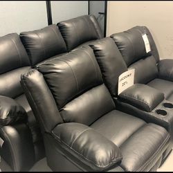 Black Leather ** Edmar Reclining Headrest Sofa And Loveseat Set (%20discount available) | Brand New @ Fast Delivery π$3,609Woodbridge, VA
