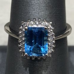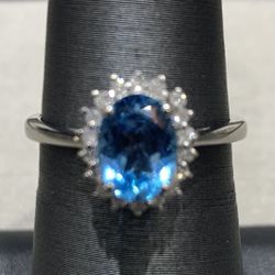 10K White Gold Diamond Blue Topaz Ring $450Columbia, MD