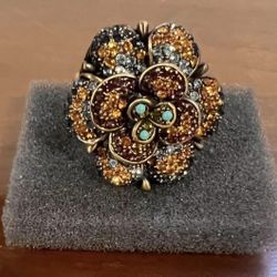Heidi Daus Multicolor Crystal Brass Floral Design Statement Cocktail Ring Size 8$100Baltimore, MD