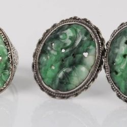 Vintage Carved Green Jadeite Jade Floral Sterling Screw Back Earrings And Ring.$300Baltimore, MD