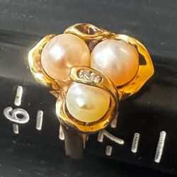 14K YELlOW GOLD RING WITH 3 PEARLS 2 SMALL DIAMONDS 4.8G - SIZE 6.5$350Gaithersburg, MD