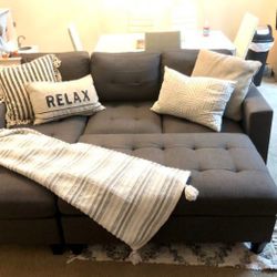 Ash black Charcoal color Linen Sectional Sofa with storage ottoman and 2 accent pillows. $799Wheaton-glenmont, MD