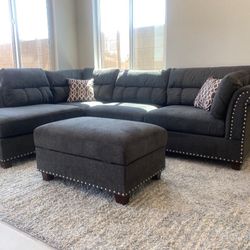 Brand New Black Linen Sectional Sofa Couch With Reversible Chaise And Ottoman$650Wheaton-glenmont, MD