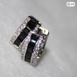 Black and Silver Rhinestone Small Hoop Earrings$10Waldorf, MD