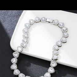 Heart Shape Chain Necklace Plated Silver Color Full Crystal Stone Iced Out$20Fairfax, VA