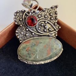 Artistic large Silver Pendant With Ruby Stone for Necklace New $20 / Fashion long dangle Earring New $12 $20Alexandria, VA