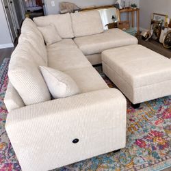 Brand new ivory color corduroy Sectional Sofa with usb charging and storage ottoman$849Silver Spring, MD